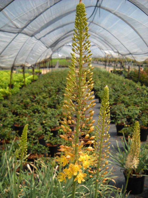 Infiorescenze terminali erette (racemi), sostenute da fusti vigorosi. Le infiorescenze chiamate "coda di volpe" sono composte da una miriade di piccoli fiori stellati di colore giallo. La fioritura inizia nella parte più bassa dell'infiorescenza e prosegue via via sino alla cima.