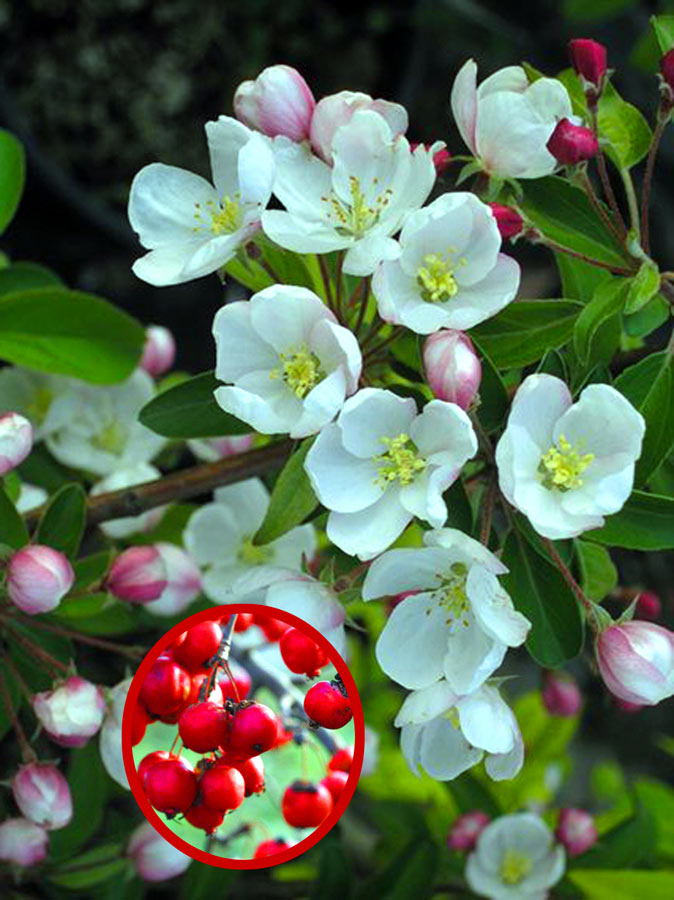 In autunno-inverno appare una massa di meravigliosi frutti (pomi) di colore rosso vivo. Portamento stretto, eretto e colonnare.